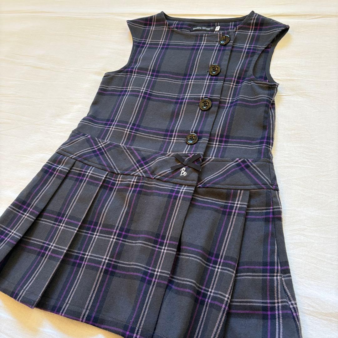BeBe チェック柄ワンピース 110cm ジャンパースカート グレー