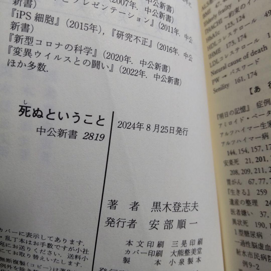 【少し破れ有り】死ぬということ 黒木登志夫著