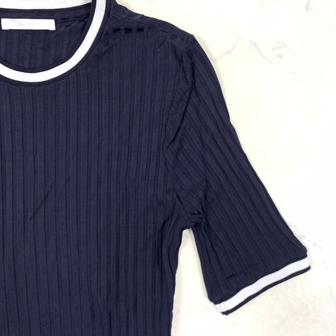 LA7001 ヒューゴボス 半袖リブカットソー レーヨン ネイビー S