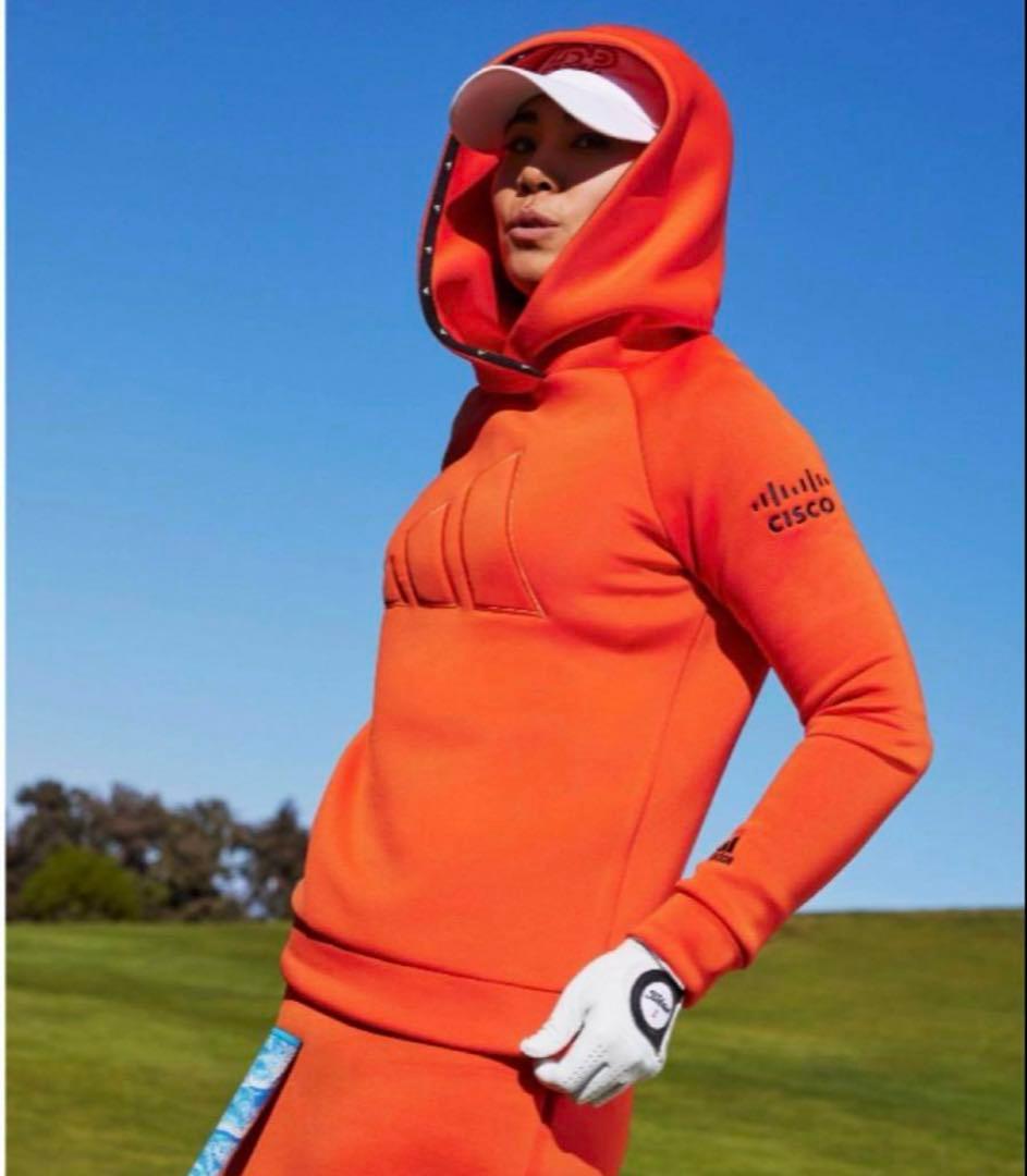 新品 アディダスゴルフ ビッグアディロゴダンボールニット フーディー 泉里香 S