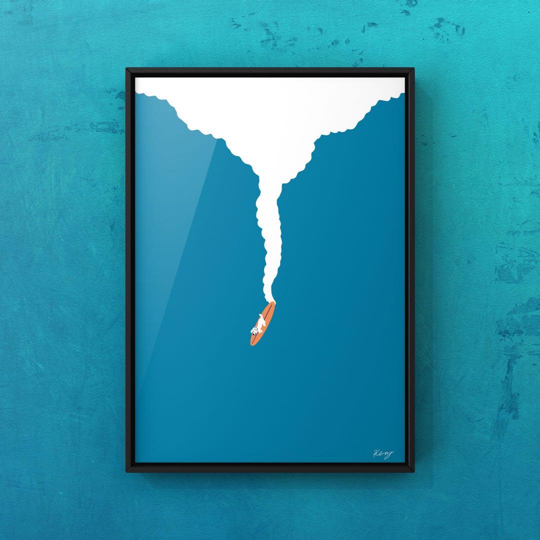 ★A4フレーム付き★オリジナル アートポスター DROP 犬 サーフィン