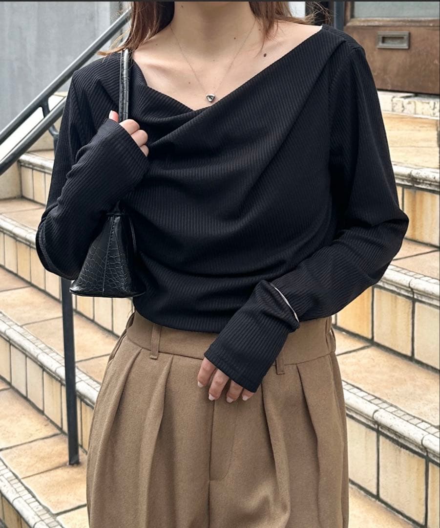 RANAN 2WAY ドレープオフショル リブロンT Lサイズ