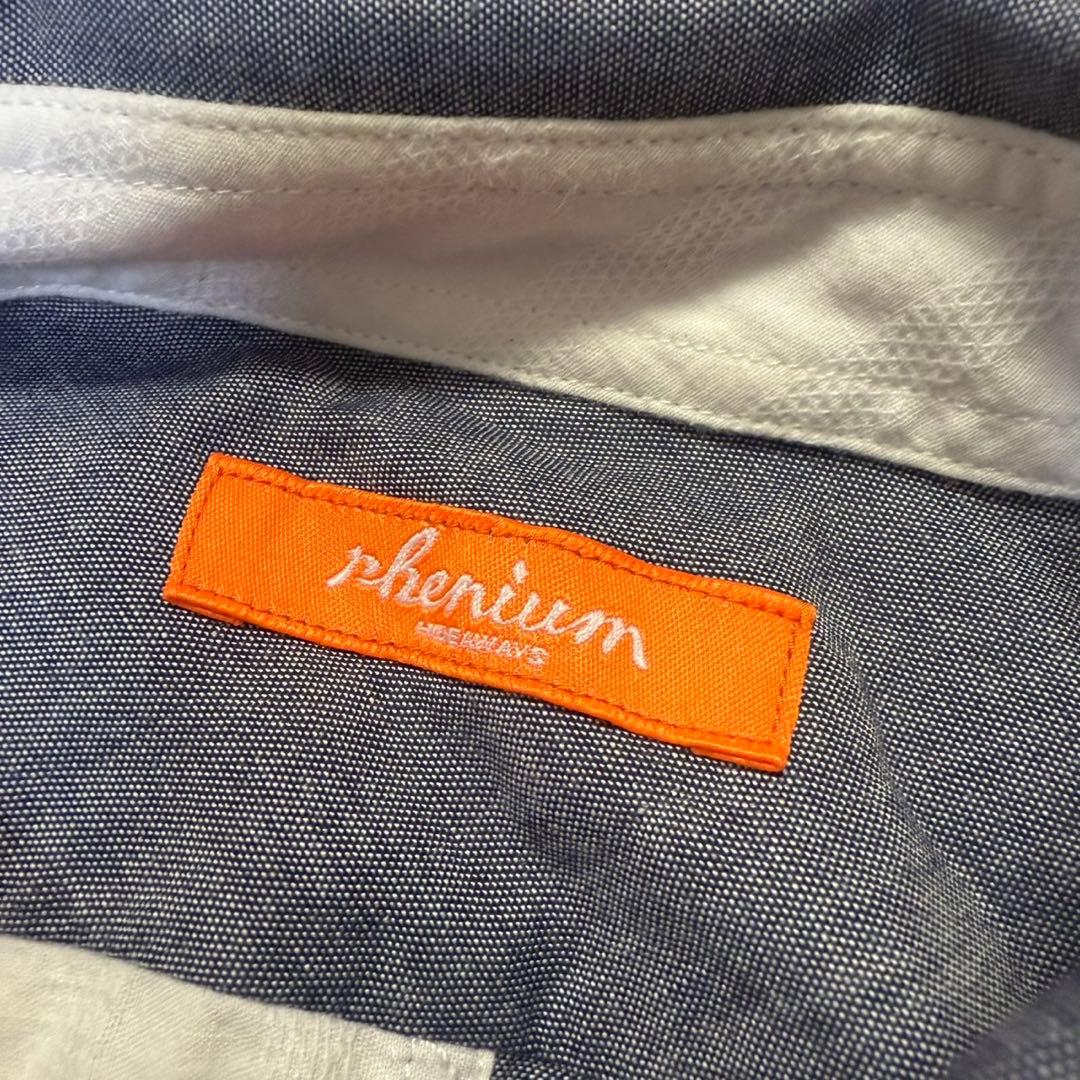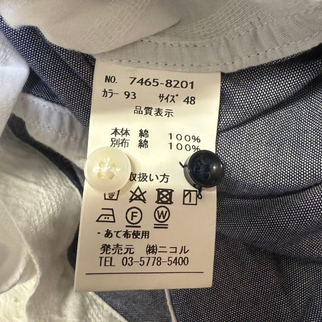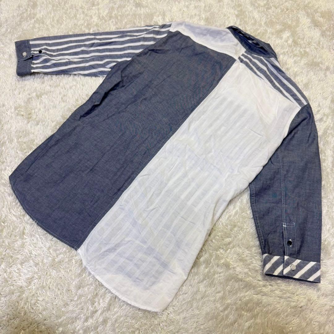 【rhenium】メンズ 48切り替えストライプシャツ ホワイト×ネイビー