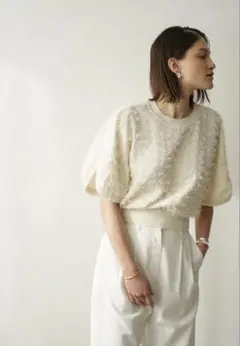 CLANE FRINGE ARCH SLEEVE KNIT TOPS ホワイト