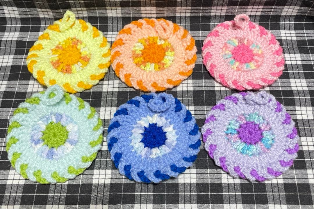 ハンドメイド 手編み 抗菌防臭 アクリル毛糸たわしコースター6枚セット