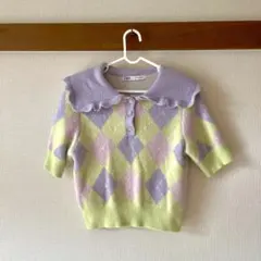 GRL フェザー配色襟付きニットトップス k9368f