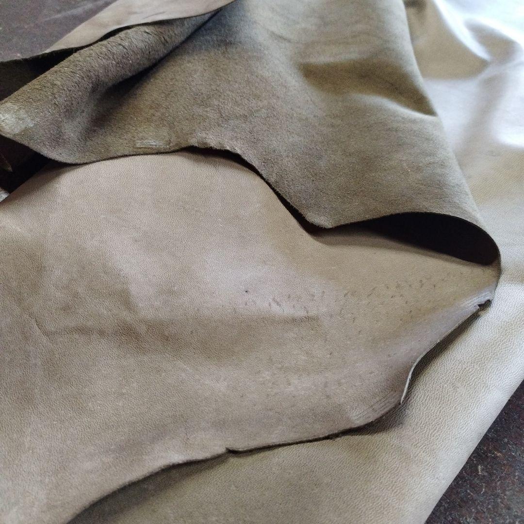 馬革スエード姫革レザークラフトに最適お洒落カーキ本革