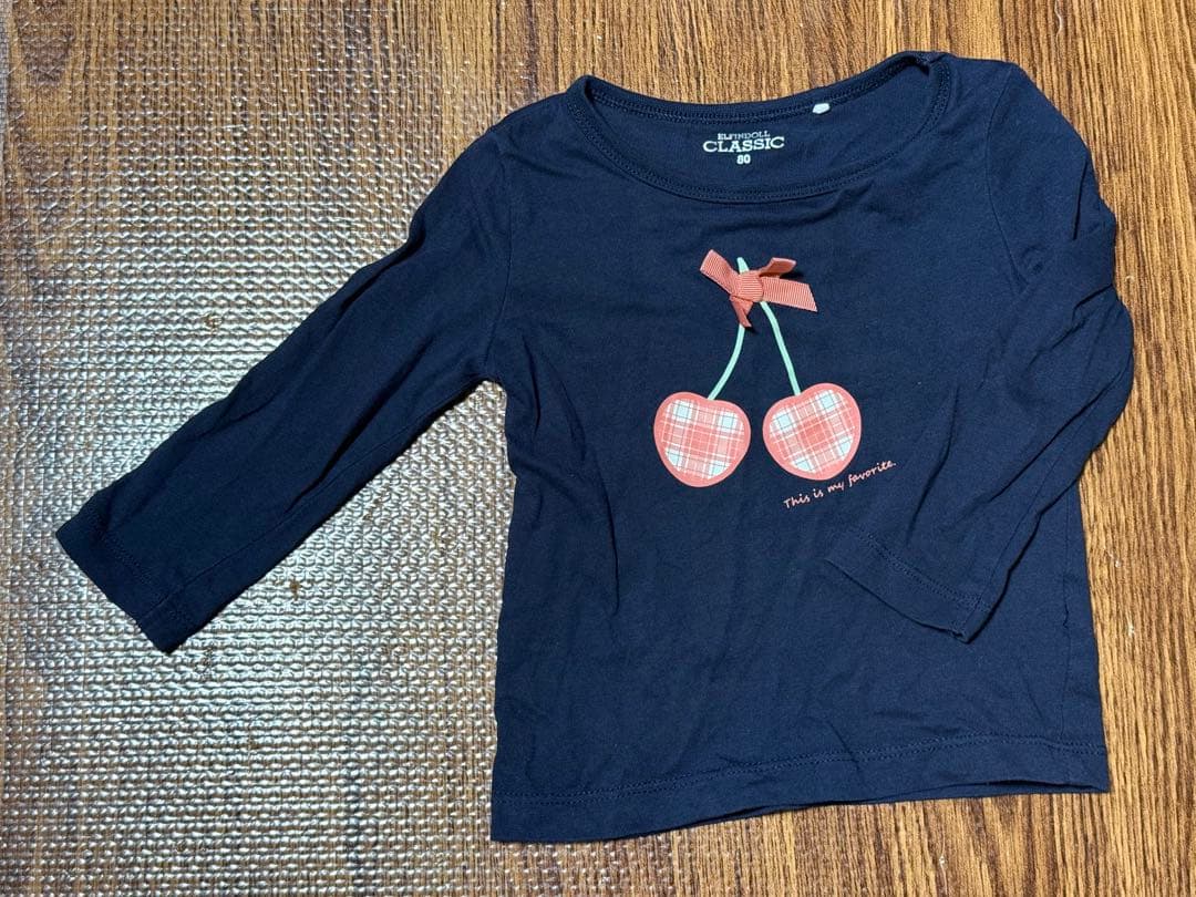 USED品 長袖 トップス トレーナー さくらんぼ リボン 80cm 紺色