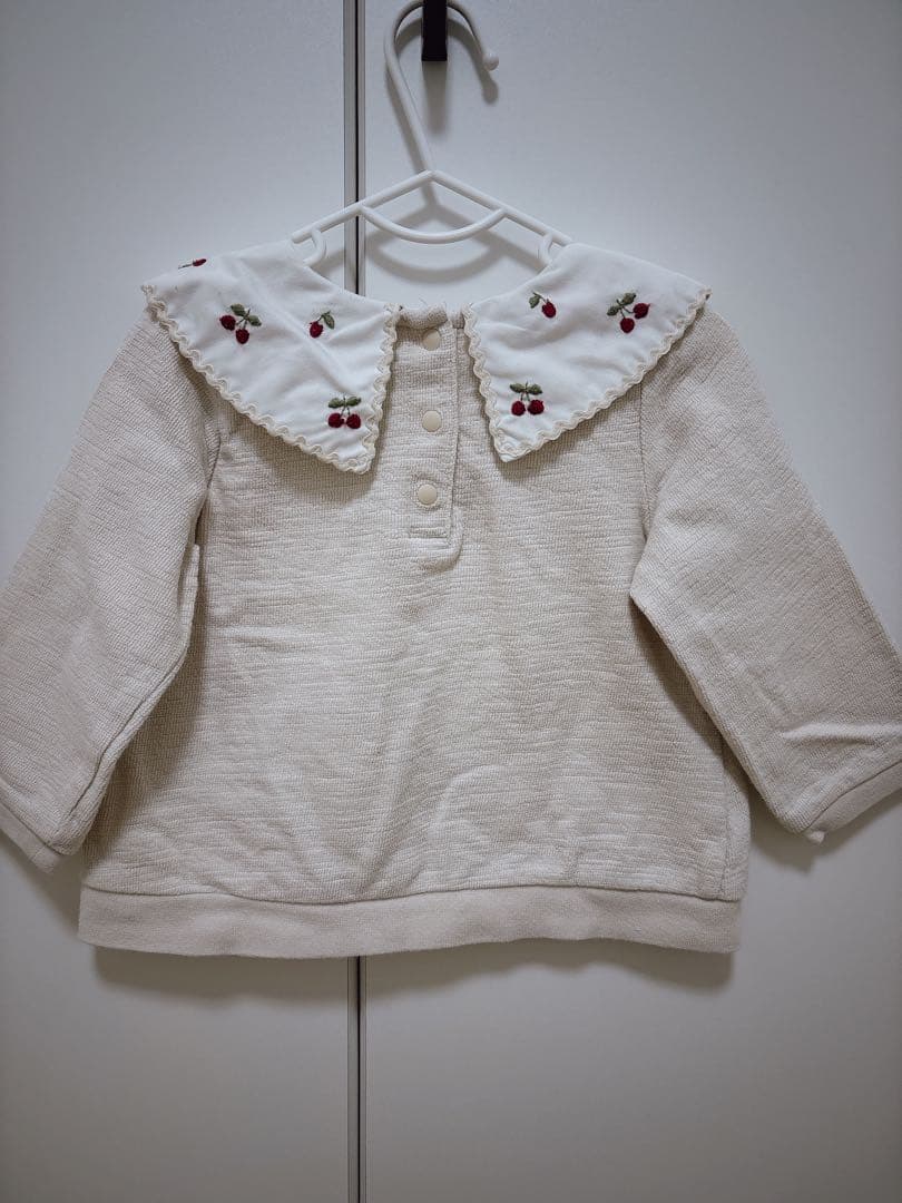 プティマイン 長袖 トップス 襟付き さくらんぼ トレーナー 90