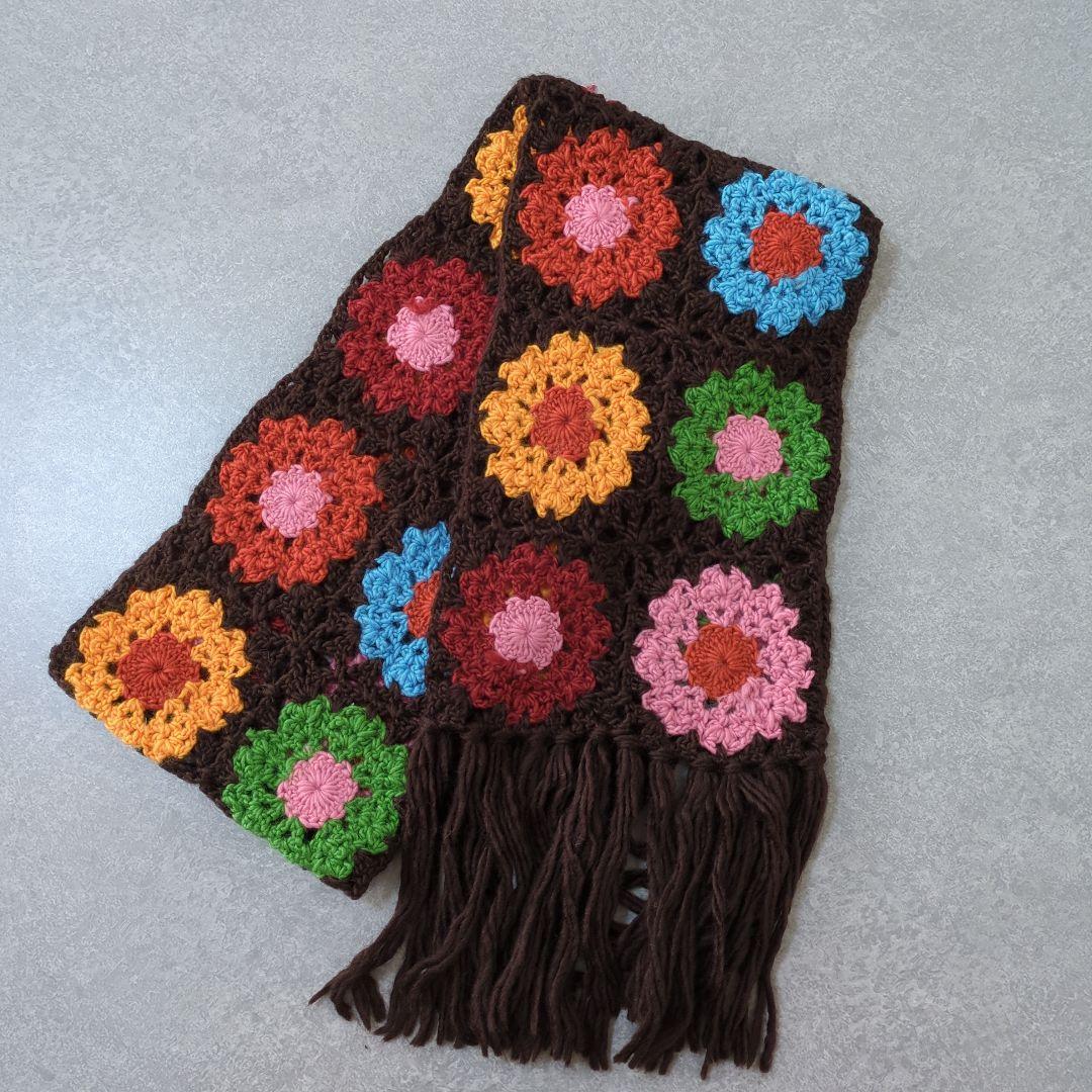 ✿カラフル花柄グラニースクエアマフラー✿ブラウンベース 新品未使用