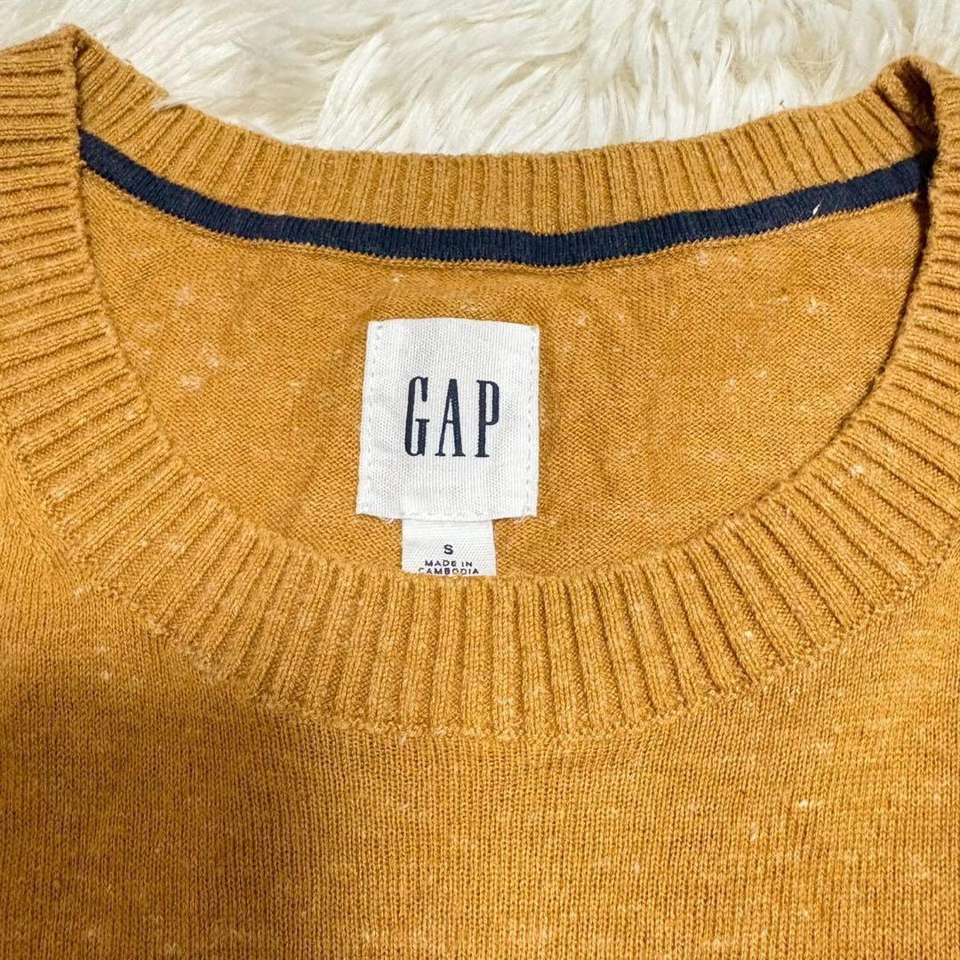 【GAP】ニットトップス S 杢マスタード 薄手 クルーネック ビジカジ