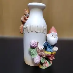 ノーム/小人&リス 牛乳瓶/MILK 置物 陶器製