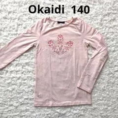 okaidi 花柄プリント 長袖 Tシャツ 140 ピンク オカイディ