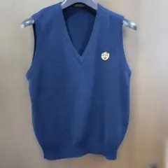 ネイビー Vネックニットベスト 金色ロゴ付き