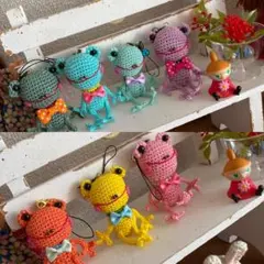 NO.706 仲良しカエル君の仲間達 1匹平均価格(編みぐるみハンドメイド)