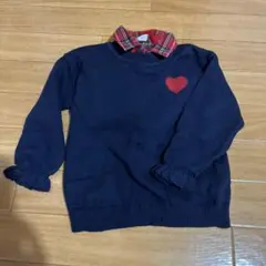 ネイビー ハート刺繍 セーター + チェックシャツ二枚セット