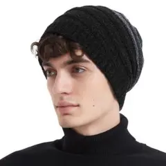 ✨️‼️半額SALE‼️✨️ニット帽 メンズ 裏起毛 防寒 F ブラック グレー