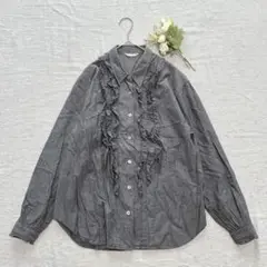 AILEMA ブラックデニムシャツ ピンタックフリル 羽織り きれいめカジュアル