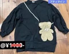 プティマイン くまポシェットロングトレーナー 110 黒 ブラック 裏起毛
