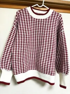 VENT DE VERT️ ニット セーター LL相当 白 柄 肩パッド