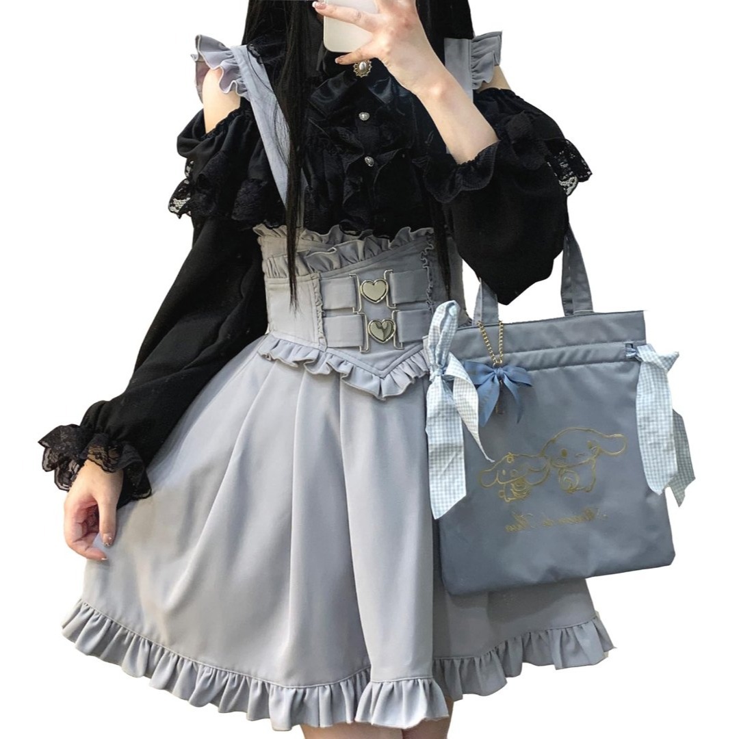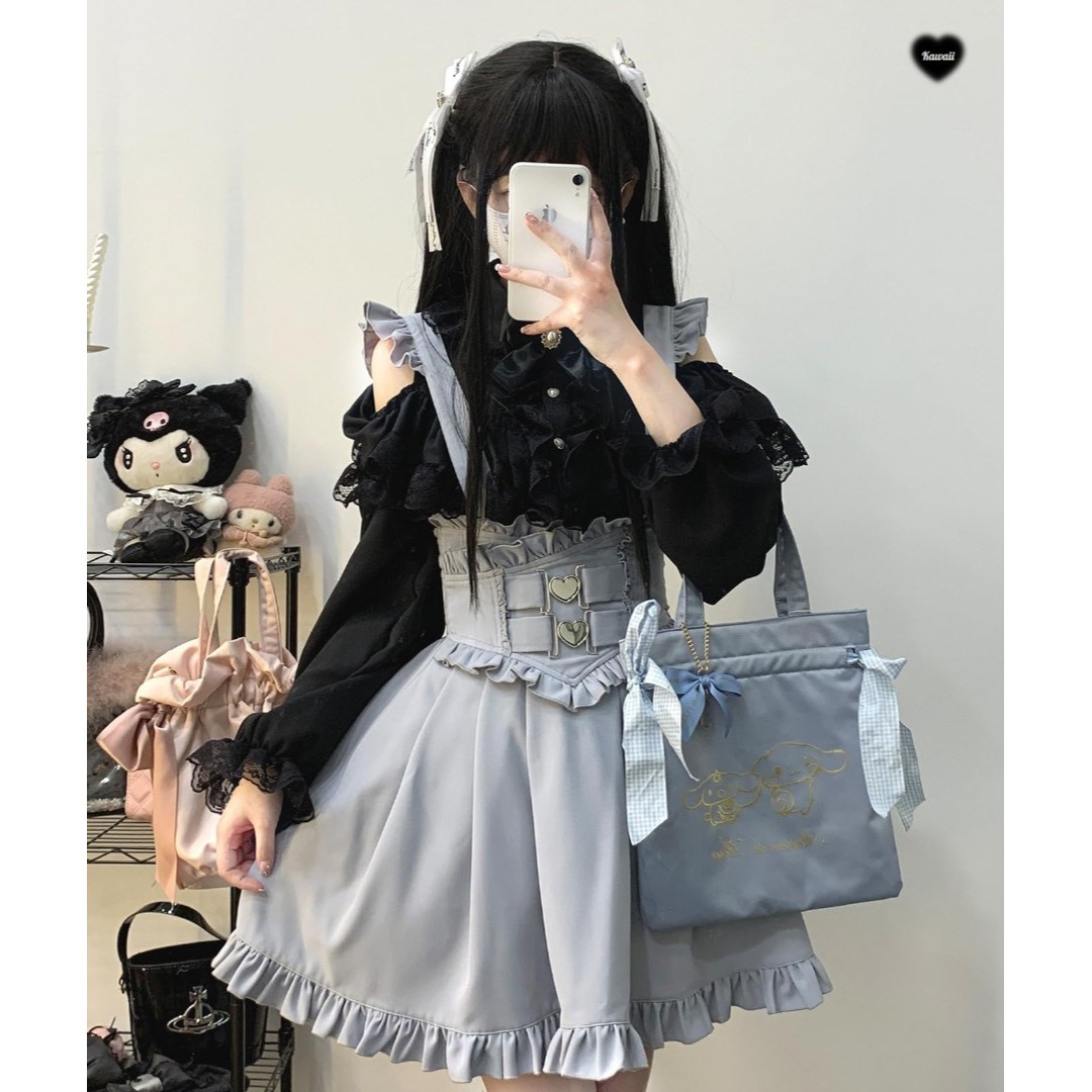 [XHSUKADO] かわいい オープンショルダー ブラウス 量産型 シャツ レ