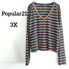 Popular21 Vネック 長袖 カットソー Tシャツ リブ編み 3X