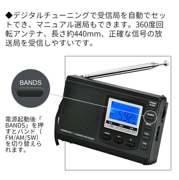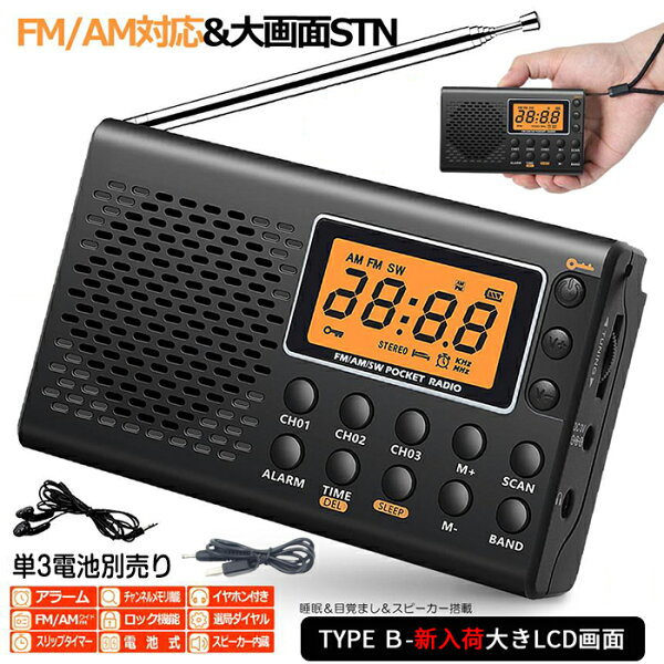 【ポイントバック抽選中】\レビュー230件突破★人気No.1/ ラジオ 小型ポータブル スリープオートオフ機能付き FMAMSW ワイドFM対応 高感度受信クロクラジオ イヤホン付き タイマー機能 USB給電 電池給電 横置き型 日本語取扱説明書付き