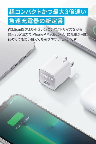 【期間限定セール実施中 12/26まで】Anker 511 Charger (Nano 3, 30W) (USB PD 充電器 USB-C)【USB PD 対応 / PSE技術基準適合 / PPS規格対応】MacBook USB PD対応Windows PC iPad iPhone Galaxy Android スマートフォン ノートPC 各種 その他機器対応