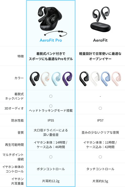 Anker Soundcore AeroFit Pro(Bluetooth 5.3)【オープンイヤー型ワイヤレスイヤホン / 3Dオーディオ / IPX55防水規格/ 最大46時間再生 / マルチポイント接続/PSE技術基準適合】