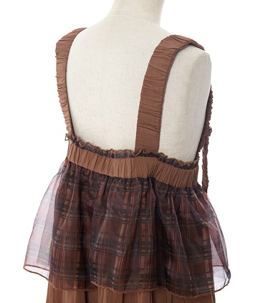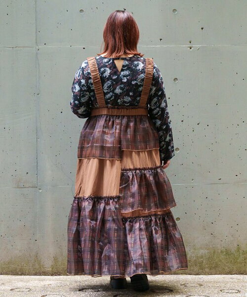 as know as ボリュチュールキャミOP レディース 大きいサイズ ワンピース キャミワンピース ワンピース キャミワンピ ボリューム プラスワン チュール オーガンジー チェック スカート ギャザー ポケット付き レーヨン ナイロン ポリエステル オオラカ