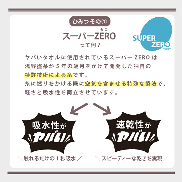 超無撚糸 ヤバいタオル フェイスタオル タオル スーパーゼロ SUPER ZERO 浅野撚糸 6色 タオル カラータオル コットンタオル ふんわり 吸水 綿100% プレゼント ギフト 34×80cm 3SS
