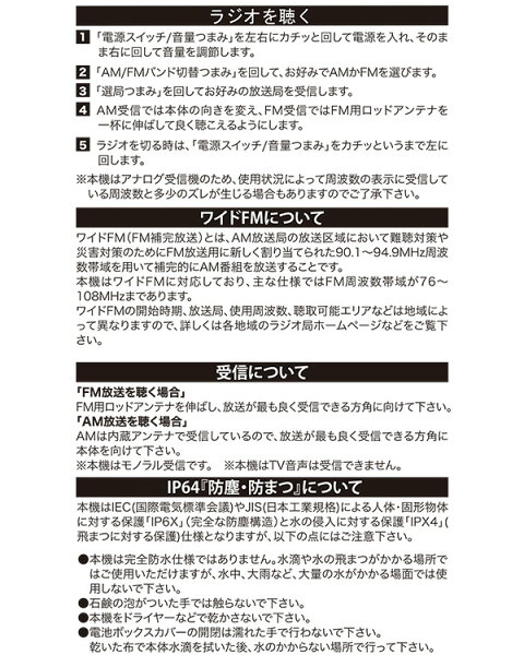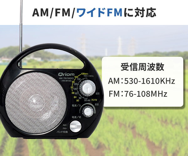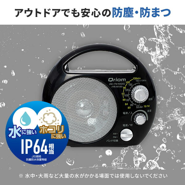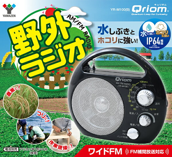 【P5倍 12/26 9:59迄】 野外ラジオ ポータブルラジオ (AM/FM) 防塵・防まつ仕様 YR-M100(B) 農業ラジオ 豊作ラジオ 屋外 野外 乾電池 コードレス ラジオ コンパクト 軽量 防災 災害対策 台風 山善 YAMAZEN キュリオム Qriom 【送料無料】