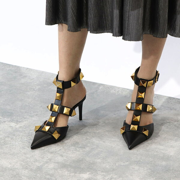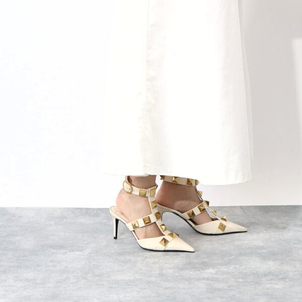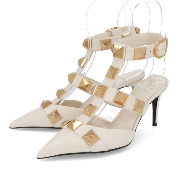 【新品】 ヴァレンティノ VALENTINO シューズ パンプス レディース ブラック ベージュ アイボリー レザー ローマンスタッズ ポインテッドトゥ ゴールド金具 サンダル ヒールあり 2W2S0CB2ZWM