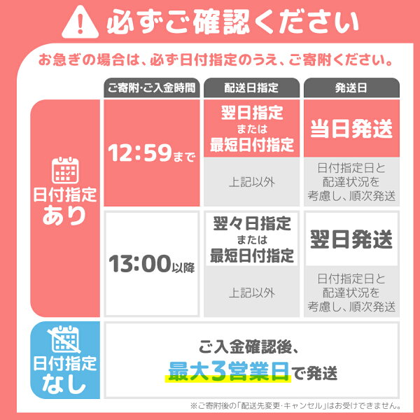 入金確認後、注文内容確認画面の【注文者情報】に記載の住所に準備でき次第順次発送いたします。