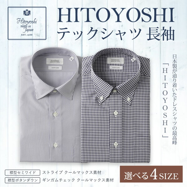 【ふるさと納税】HITOYOSHIテックシャツ長袖 柄の2枚セット セミワイド ボタンダウン 各1枚 紳士用 選べるサイズ M/L/LL/3L ポリエステル100% 日本製 長袖シャツ 無地 ドレスシャツ メンズ 男性 ファッション 熊本県 人吉市 送料無料