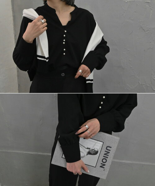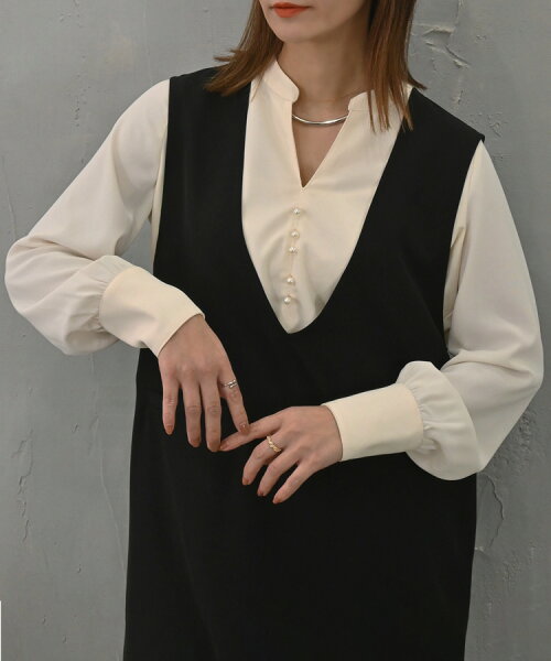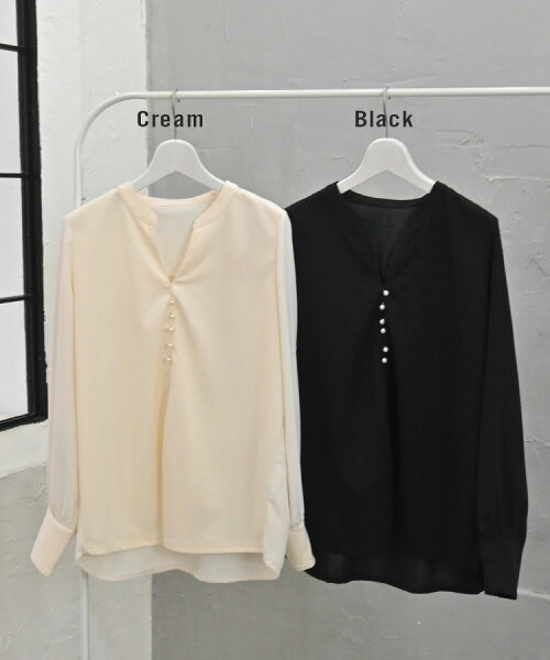 商品名:Sheson(シーズン)パールボタンキーネックブラウス