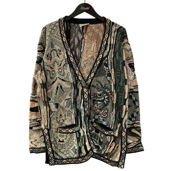 ニットカーディガン ベージュ×グリーン サイズ:SS