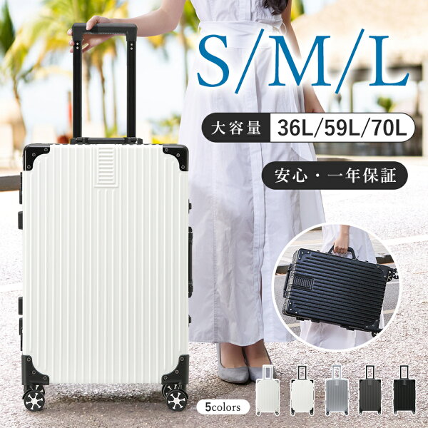 クーポンで6384円~【在庫処分】【1年保証付き】キャリーバッグ キャリーケース スーツケース 大型 軽量 アルミフレーム スーツケース ダブルキャスター 静音効果 メッシュポケット 保護用ガード 大容量 Sサイズ Mサイズ Lサイズ 36L 59L 71L 4~7泊以上