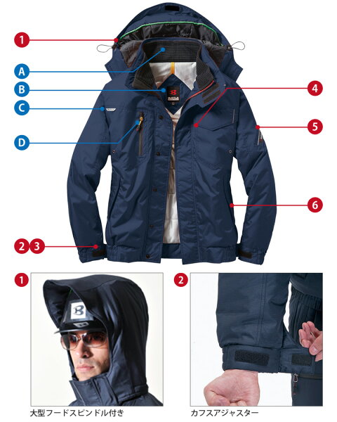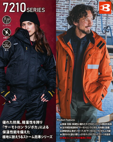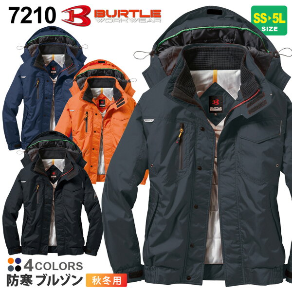 作業服 BURTLE 防風 防寒ブルゾン NL 7210 バートル 【秋冬】 防寒着 撥水 軽量 アウター 大型フード付き サーモトロン ラジポカ 作業着 冬用 ジャケット ジャンパー 長袖 男女兼用 ユニセックス ドカジャン 保温 7210シリーズ