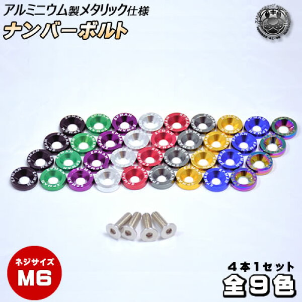 アルミ製 ナンバープレートボルト アルマイト メタリック仕様 フェンダーワッシャー 4個セット ブラック グリーン パープル シルバー レッド グレー ゴールド ブルー チタン(ネオクローム) 【 プレート ナンバー スポコン USDM JDM ドレスアップ カスタム 】 エムトラ