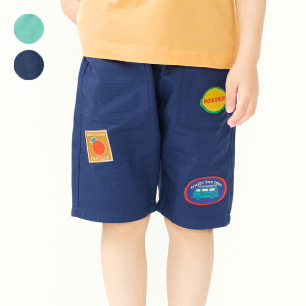 【25夏セール40%OFF】子供服 moujonjon (ムージョンジョン) フルーツワッペン付5分丈ハーフパンツ 80cm 90cm 100cm 110cm 120cm 130cm M35161