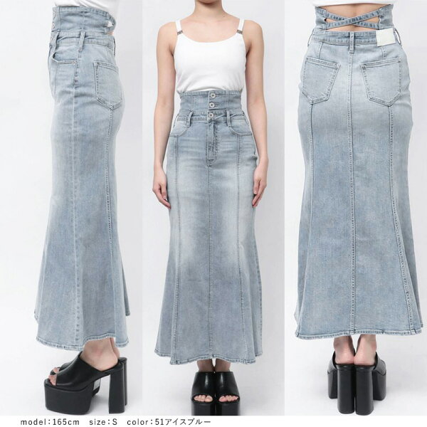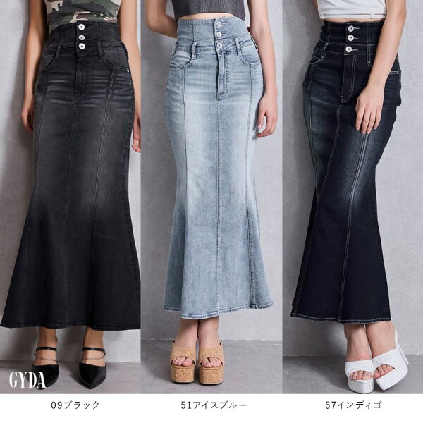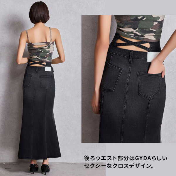 【最短翌日お届け】ハイウエストBACKクロスマーメイドデニムスカート GYDA ジェイダ 072542516801 gyda レディース デニムスカート S M アイスブルー ブラック インディゴ GYDA デニムスカート gyda マーメイドスカート