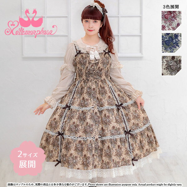 【予約】メタモルフォーゼ ゴブランブーケ シャーリングティアード<ミディアム>ジャンパースカート 【2サイズ展開】【ロリータファッションロリィタPlusSize】【2026年2月~2026年3月入荷】【予約品納品後】
