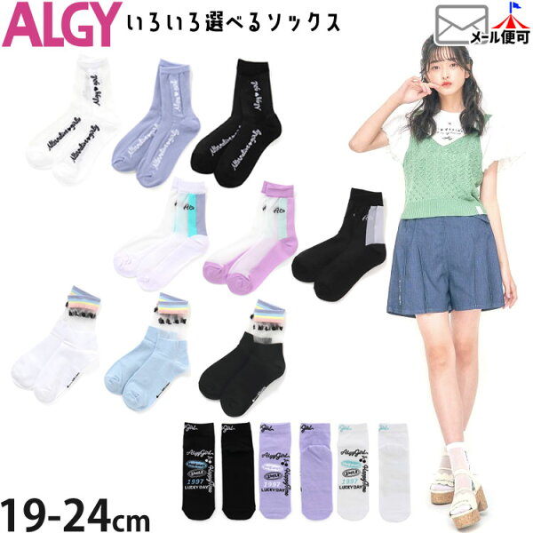ALGY 靴下 アンクルソックス クルーソックス ショートソックス くるぶし 女の子 キッズ ジュニア レインボーリブ シースルー 縦ロゴ 配色 チェリー 子供用 小学生 水色 紫 黒 白 19cm 20cm 21cm 22cm 23cm 24cm アルジー alg-sox3