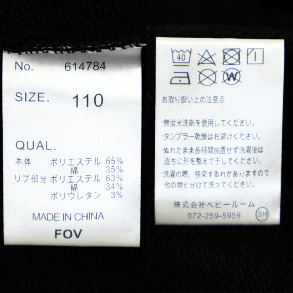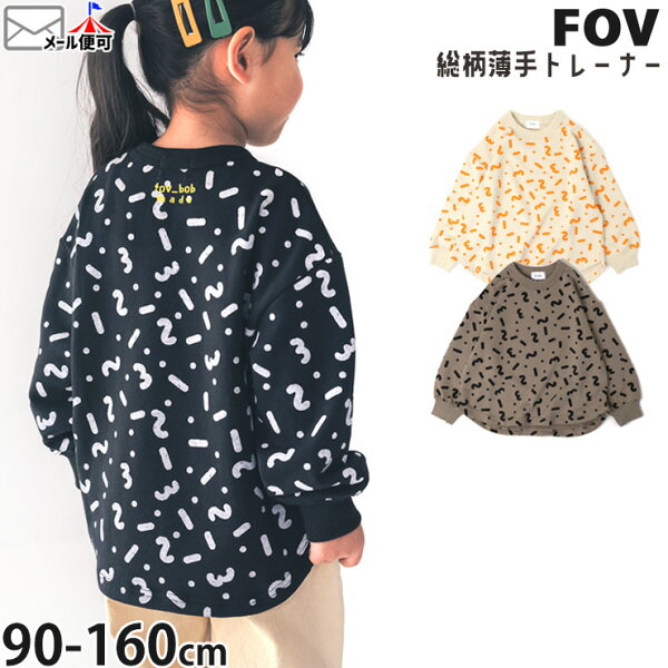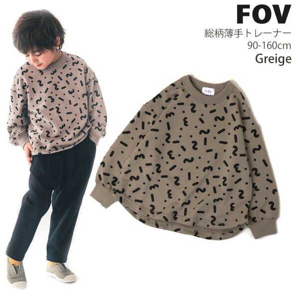 【メーカー価格3740円】FOV 薄手トレーナー 総柄 ビッグシルエット 男の子 女の子 キッズ 春秋冬 スウェット 裏毛 長袖 トップス 小学校 フォブ 90 100 130 グレー 黒 白 614784