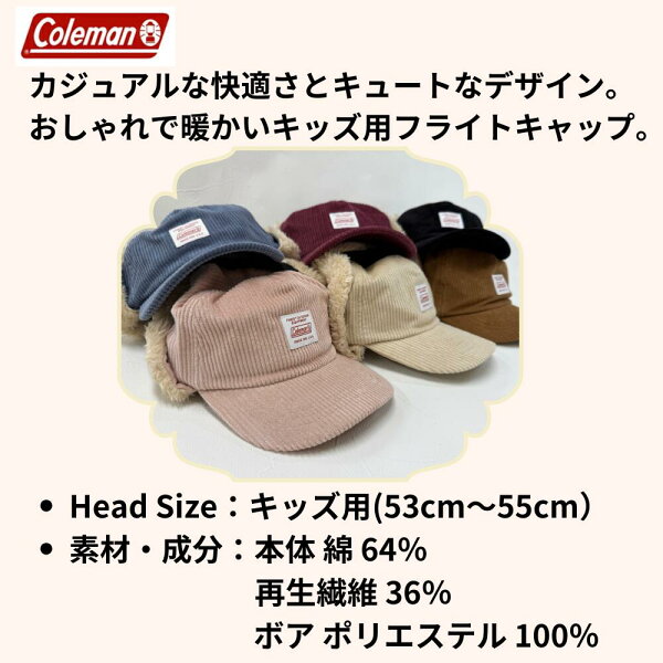 【30日 楽天カードでポイント最大4倍】キッズ コールマン コーデュロイ フライトキャップ ボア 耳あて 子供 冬 帽子 小学生 男の子 女の子 通学 あったか 雪 アウトドア タウン カジュアル おしゃれ かわいい ギフト プレゼント coleman