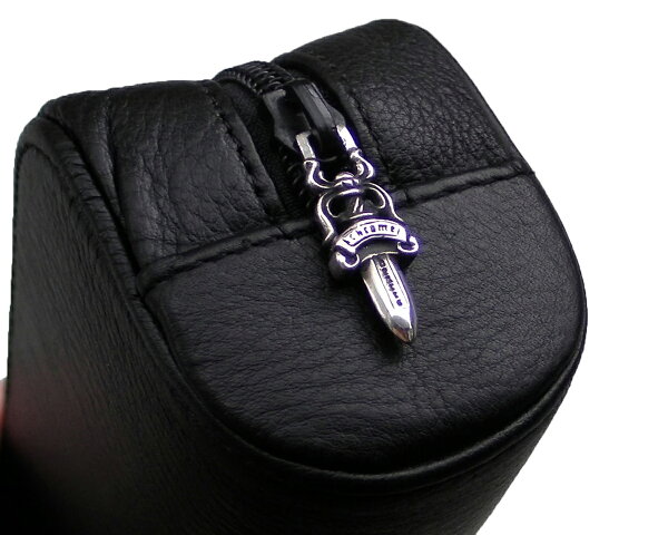 CHROME HEARTS EYEGLASS CASE POUCH BAG W/DAGGER ZIPPER クロムハーツ レザーポーチ/小物入れ