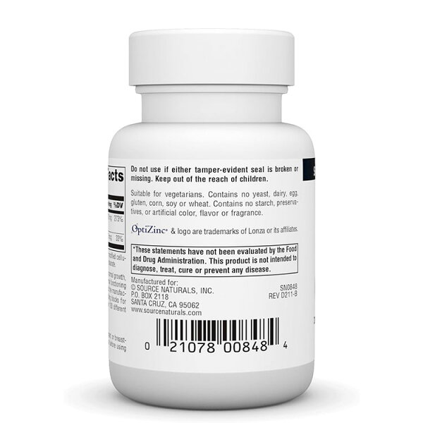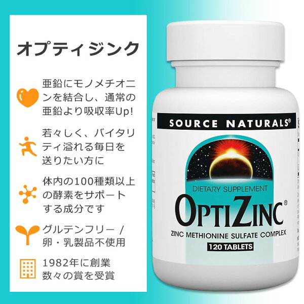 ソースナチュラルズ オプティジンク 亜鉛 30mg 120粒 タブレット Source Naturals Optizinc tablets ミネラル モノメチオニン結合 銅配合 バランス