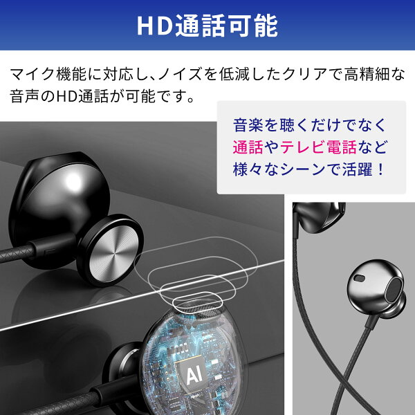 スマホ マイクイヤホン 3.5mm マイク付き有線イヤホン マイク付きイヤホン HiFi インナーイヤー型