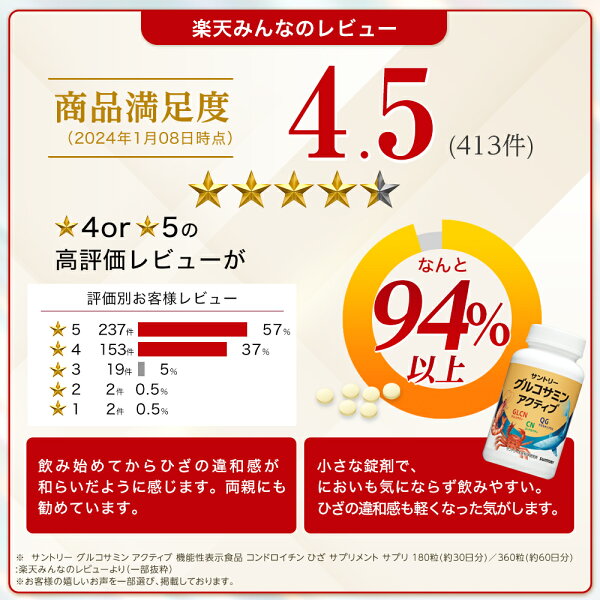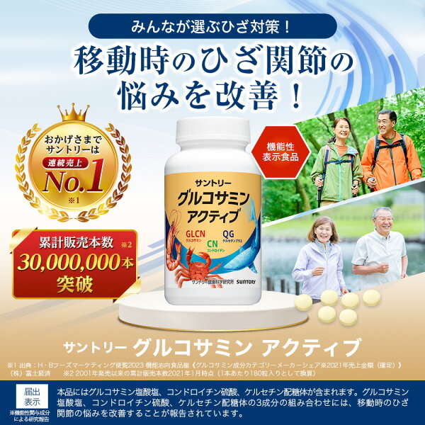 グルコサミン アクティブ ひざ サプリ 360粒(約2ヶ月分)×3個セット 機能性表示食品 サントリー公式 ケルセチン コラーゲン コンドロイチン サプリメント サプリ 膝
